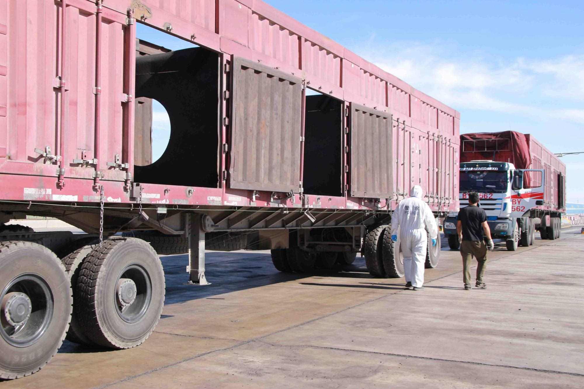 近期策克口岸的溫度持續(xù)增加至30攝氏度以上,而在通行的重型卡車(chē),溫度還要更高,下午15點(diǎn)溫度計(jì)地表溫度測(cè)量最高可達(dá)40攝氏度。這無(wú)疑讓的查驗(yàn)工作更為繁重。更重要的是,由于疫情影響每名民警在查驗(yàn)期間都要穿上防護(hù)服,在高溫下,由于防護(hù)服是密閉的,防護(hù)服里仿佛成了蒸箱,用不了十分鐘,民警就會(huì)汗流浹背,防護(hù)服黏在身上又粘又癢,一班勤務(wù)近2個(gè)小時(shí),必須要等過(guò)了勤務(wù)才能休息,而民警還要完成車(chē)體的查驗(yàn)工作,包括工具箱、馬槽等處,絲毫不敢馬虎。