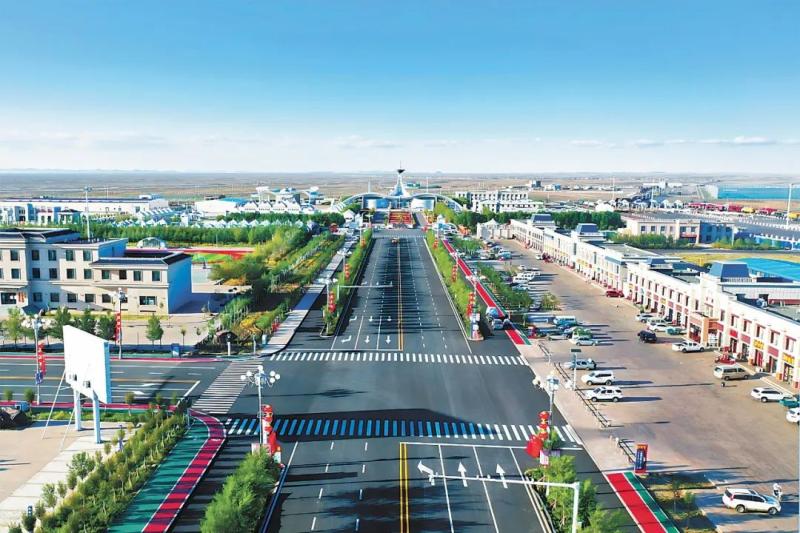 策克口岸國(guó)門區(qū)域鳥瞰圖。薩仁格日勒攝