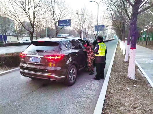 12月20日17時15分,九原區(qū)交管大隊第三警務(wù)區(qū)執(zhí)勤民警正駕駛警車在轄區(qū)巡邏清理違停車輛,當(dāng)巡邏至緯四路與經(jīng)二路交叉口時,他們發(fā)現(xiàn)一輛黑色越野車停在緯四路非機(jī)動車道內(nèi)且打著雙閃?!翱吹杰嚧蛑p閃燈,想著可能是車上的人有啥困難,我們就把警車開到附近,看到一名年輕男子正在車周圍焦急地來回徘徊,神情特別緊張。”執(zhí)勤民警說。