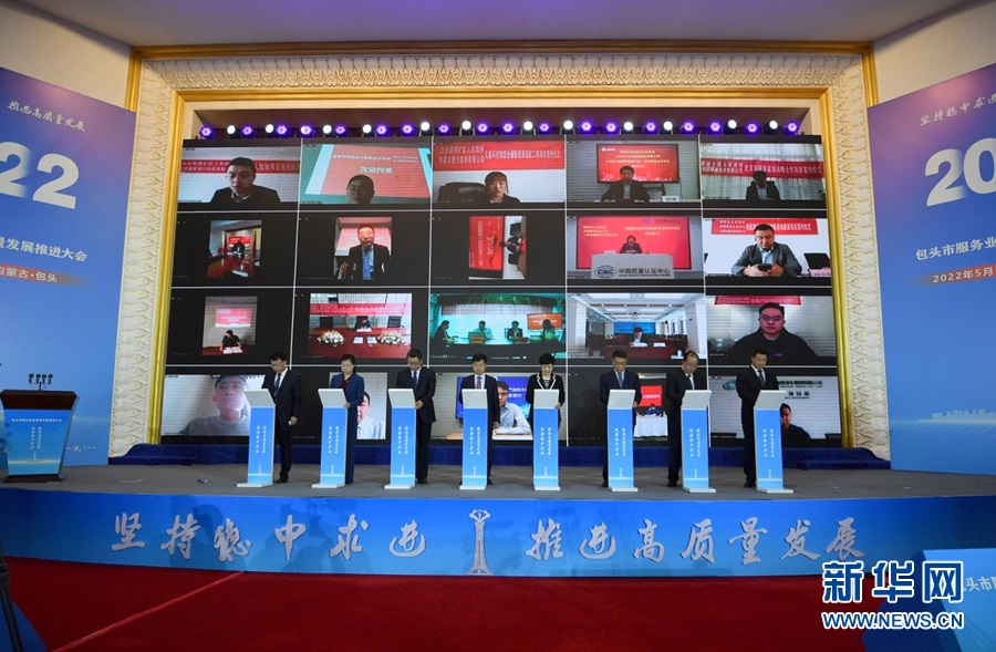 5月10日,包頭市服務(wù)業(yè)高質(zhì)量發(fā)展推進(jìn)大會(huì)網(wǎng)絡(luò)簽約儀式。新華網(wǎng)發(fā)(安吉斯 攝)