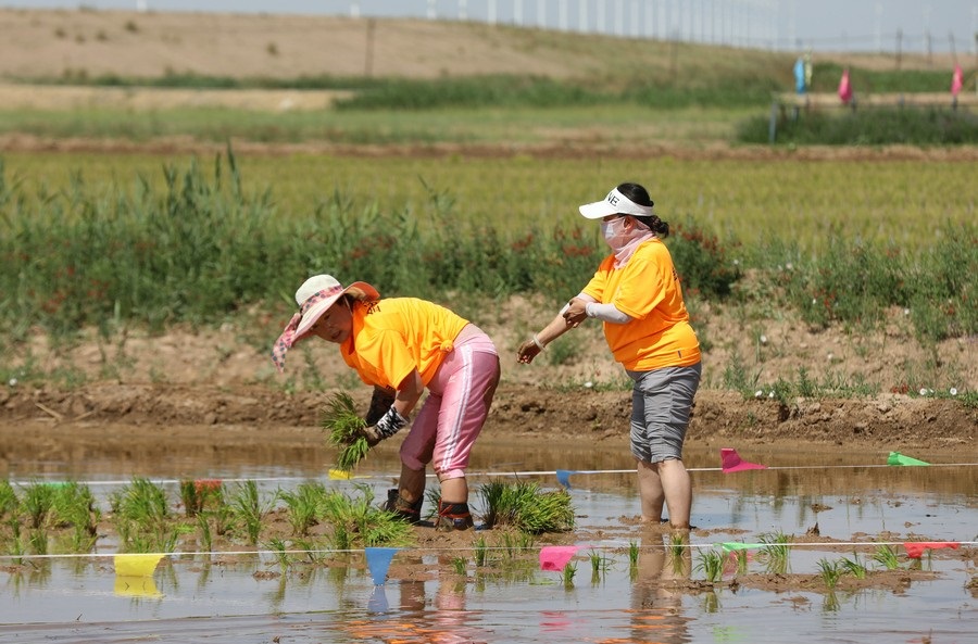 6月18日,2022年包頭市首屆插秧節(jié)暨“網(wǎng)約游東河·玩轉(zhuǎn)新農(nóng)村”主題活動在此間舉行。當(dāng)天,來自東河區(qū)的20支插秧隊伍,走進(jìn)烈日炎炎的水田,挽起褲管,穿上水靴,進(jìn)行了一場別開生面的插秧大賽。