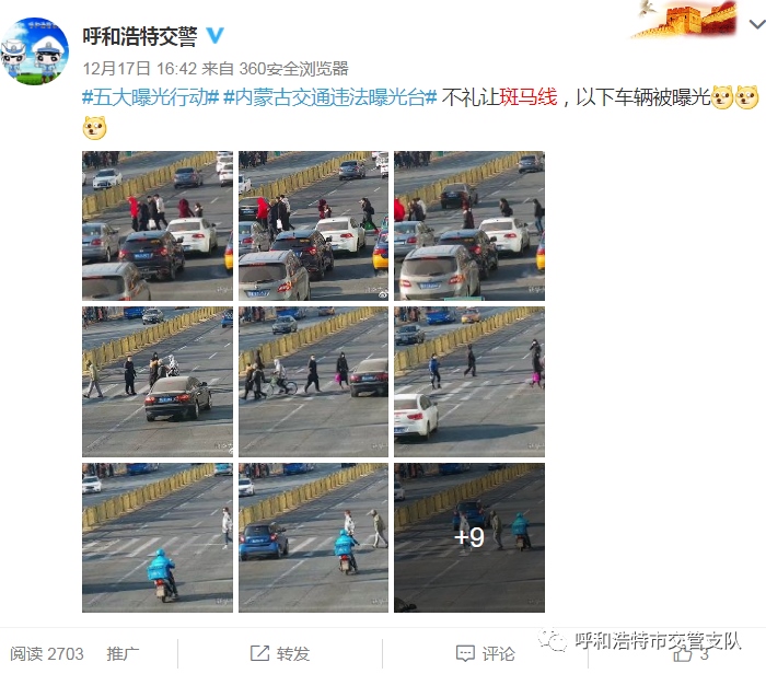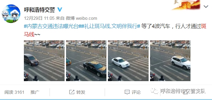 為實(shí)現(xiàn)斑馬線交通安全“三提升一下降”(機(jī)動車禮讓斑馬線和行人、非機(jī)動車守法意識明顯提升,輿論宣傳倡導(dǎo)“機(jī)動車禮讓斑馬線”的深度與廣度不斷提升,群眾對城市交通管理的滿意度顯著提升;因不禮讓斑馬線導(dǎo)致人員傷亡的交通事故發(fā)案率大幅下降)的目標(biāo),按照交管支隊(duì)關(guān)于開展集中整治機(jī)動車不禮讓斑馬線行動方案的統(tǒng)一部署,支隊(duì)指揮中心運(yùn)用高科技手段,利用高清視頻探頭抓拍機(jī)動車不禮讓斑馬線等交通違法行為,并錄入道路交通管理綜合應(yīng)用平臺。自2020年12月12日至12月31日,利用大屏監(jiān)控設(shè)備抓拍260條,錄入系統(tǒng)并予以曝光。