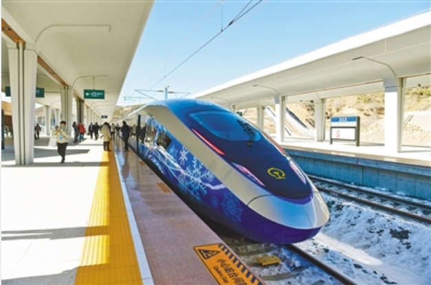 北京冬奧會期間,身披“瑞雪迎春”涂裝的北京冬奧列車馳騁在京張高鐵上,連通北京、張家口兩地三個賽區(qū),暢通世界各國運動員的逐夢之路。