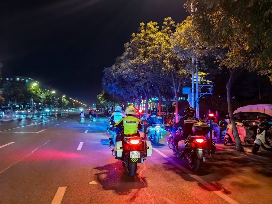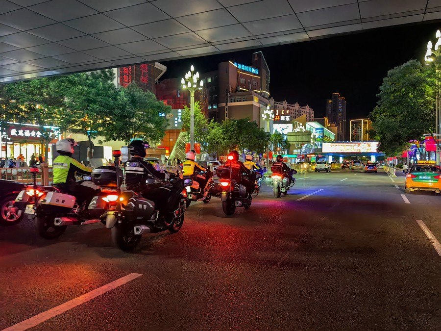 中秋、國(guó)慶兩節(jié)期間,呼和浩特市公安局反恐怖和特巡警支隊(duì)?wèi)?zhàn)鷹突擊隊(duì)與交警支隊(duì)停放管理大隊(duì)鐵騎中隊(duì),聯(lián)合開(kāi)展巡邏防控工作,并組成了一支騎警處突機(jī)動(dòng)隊(duì),成了呼和浩特大街小巷一道亮麗的風(fēng)景線。圖為中秋節(jié)之夜,這支機(jī)動(dòng)隊(duì)開(kāi)展聯(lián)合巡邏,守護(hù)青城百姓平安過(guò)節(jié)。 王鑫 攝影報(bào)道