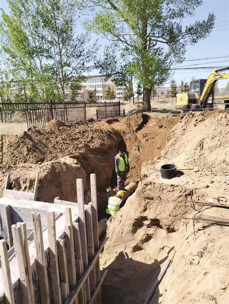 5月23日,記者在呼和浩特市賽罕區(qū)大一間房村應急水源置換工程施工現(xiàn)場看到,直徑300毫米的球墨鑄鐵管道正被埋入地下,遠處的頂管設備正在穿越農田作業(yè)。