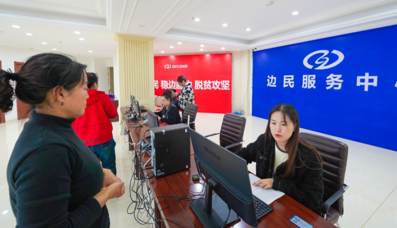 圖為邊民在滿洲里中俄互市貿(mào)易區(qū)進行交易申報。
