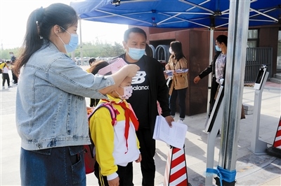 “等了這么久,終于可以和同學(xué)們說句:早上好?!?月2日,早上7點(diǎn)剛過,通遼新城第一中學(xué)小學(xué)部二年一班的班主任崔老師早早的在校門口,迎接班里的小朋友們。記者在校門口看到,此時(shí),小學(xué)部二、三年級的小朋友已經(jīng)陸續(xù)入校了,顯然,“萌娃”們已經(jīng)被校門口的層層關(guān)卡震撼到了,幸好,在眾多老師的幫助和指引下順利進(jìn)入了校門。進(jìn)入了校門后,還有一道重要關(guān)卡,測量體溫,習(xí)慣了伸出手臂來測量體溫的“萌娃”們,對著紅外線測溫儀卻不知所措了,有的對著測溫儀伸出了手臂、有的對著測溫儀行禮,著實(shí)“萌”翻了現(xiàn)場所有人?!按蘩蠋煟覀兌枷肽懔?。”見到幾位小朋友要湊到跟前兒,崔老師立刻提醒同學(xué)們:我也很想念你們,但是我們要保持“一米”的距離,快去教室吧!小朋友們被“殘忍”拒絕,很是失落。