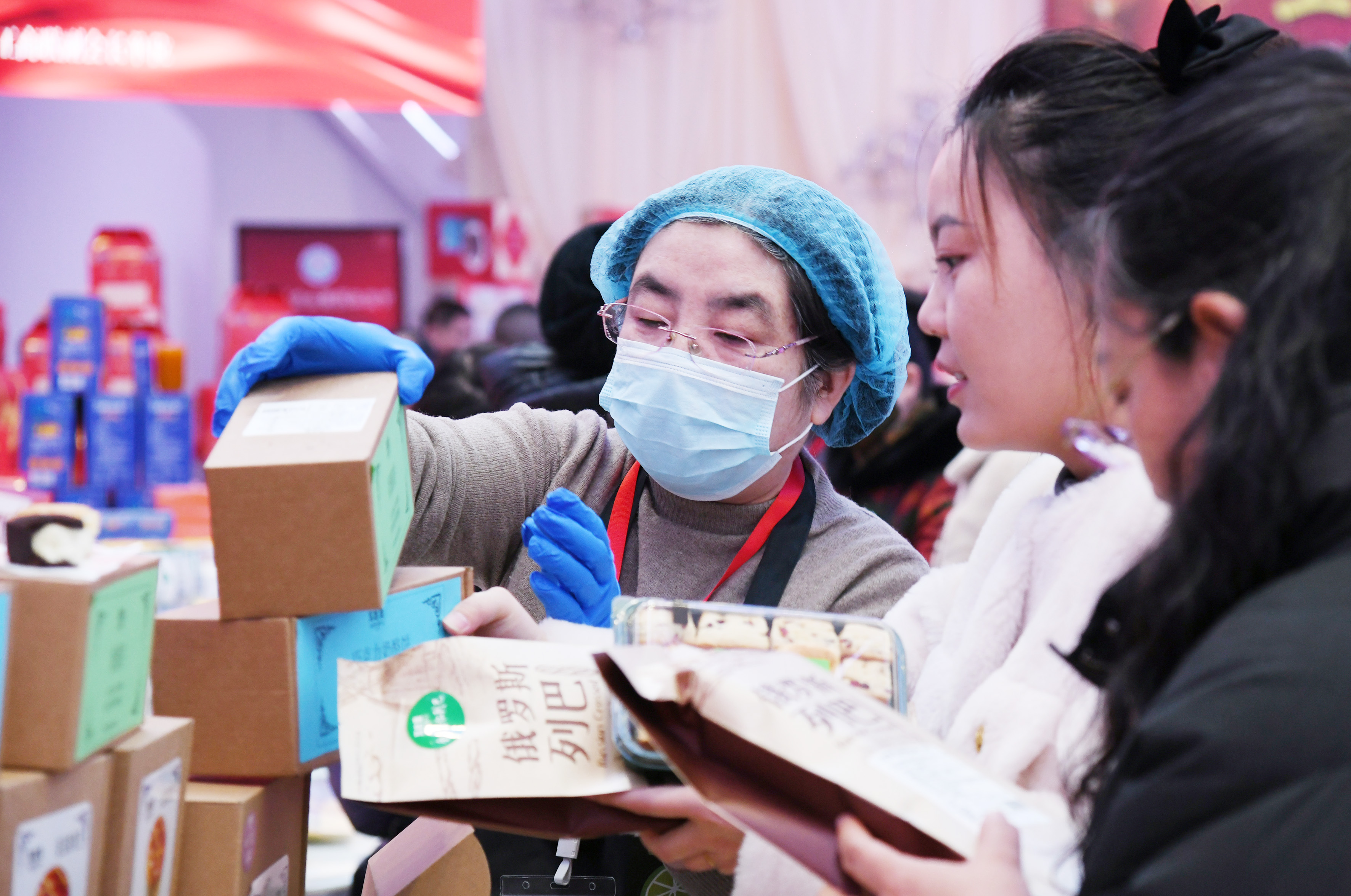 “很開心能參加這次惠民年貨節(jié),我們公司帶來的是自己生產(chǎn)加工的優(yōu)質(zhì)牛羊肉熟食品,還有我們當?shù)氐膫鹘y(tǒng)點心,產(chǎn)品均以優(yōu)惠價出售,質(zhì)美價廉,歡迎大家前來品嘗選購?!辈旃柌柯浜吞旄蹏H董事長許永珍說道。