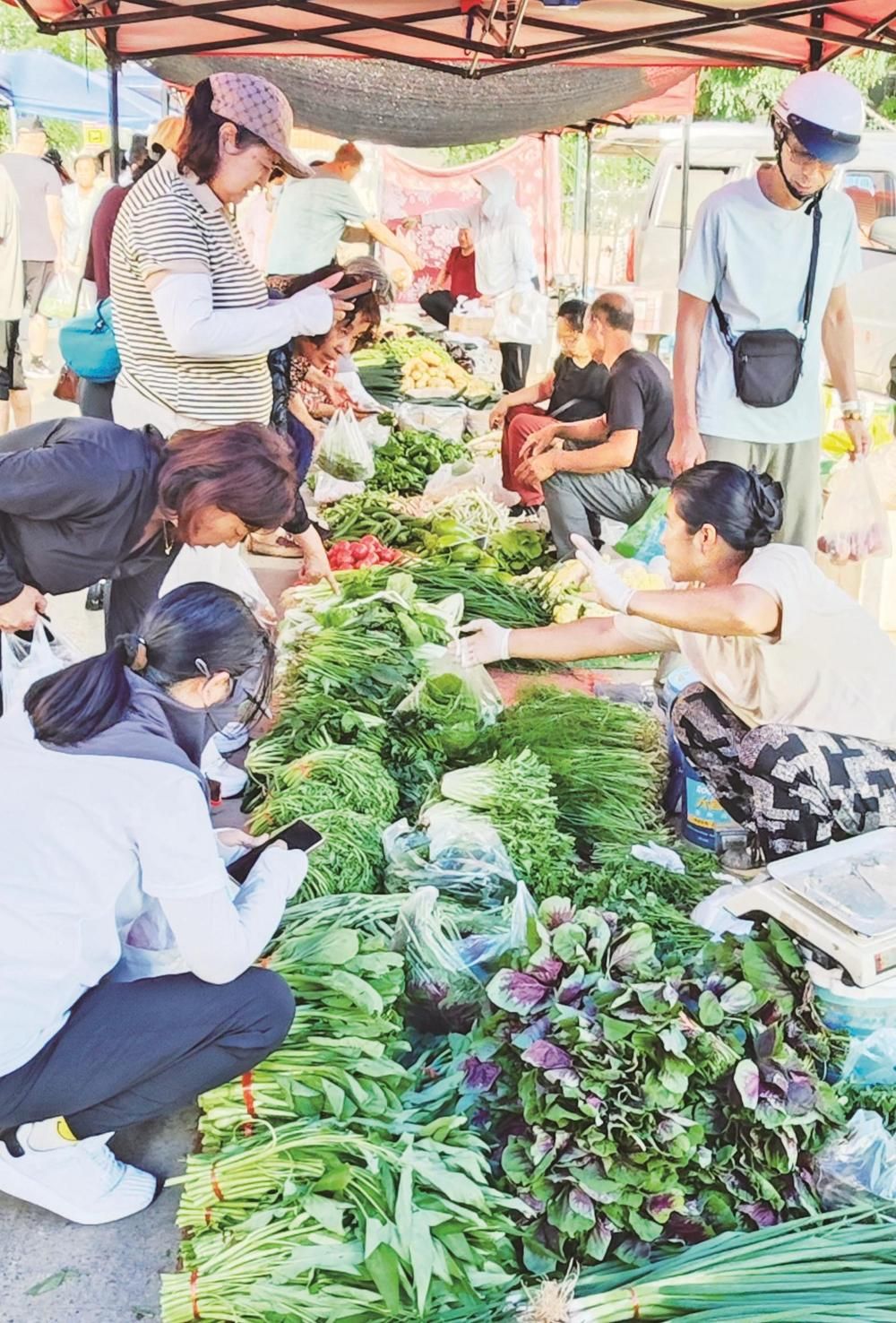 夏日的早市里,菜攤攤主牛麗梅就已經(jīng)擺放好新鮮的蔬菜,泡沫箱里的黃瓜頂著嫩黃的花,筐里的西紅柿還帶著露珠,“這些菜都是半夜起來(lái)從地里現(xiàn)摘的,你看看這黃瓜頂花帶刺的,多新鮮。我已經(jīng)在這個(gè)早市擺了十來(lái)年攤了,人們還是很認(rèn)可我家的蔬菜,就是累點(diǎn)也覺得挺高興的。”她熱情地招呼著前來(lái)買菜的市民,過(guò)秤、算賬,干脆利落,一看就有著豐富的賣菜經(jīng)驗(yàn)。