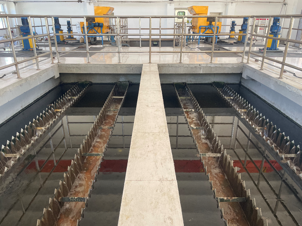 烏鋼污水處理車間內(nèi)工人正在操控設(shè)備