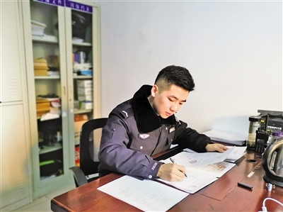 “我當人民警察還不到一年,沒想到就趕上了中國人民警察節(jié),太榮幸了。在這里,我祝愿所有的人民警察節(jié)日快樂,平平安安。”1月8日,呼和浩特市新城區(qū)公安分局西街派出所治安民警楊國清激動地說。2020年4月,23歲的楊國清正式成為西街派出所的一名治安民警,出警處警、處理案件成為他的日常工作。入職前,警校畢業(yè)再加上經(jīng)過一段時間的實習,楊國清認為這些工作應(yīng)該很容易,可當他真正走上工作崗位后才發(fā)現(xiàn),并不像自己想象的那么簡單,需要學習的地方還很多。在工作中,他總是比別人多付出一份辛苦,不斷學習,不斷請教,在實踐中積累經(jīng)驗,增強業(yè)務(wù)能力?!爱斪魍甑谝环莨P錄,簽上自己名字的那一刻,我才真正感覺到自己肩上的責任重大?!睏顕甯嬖V記者。除了日常處理案件外,楊國清和搭檔3天值一次班,一值就是24小時。只要接到報警,他們會第一時間趕到現(xiàn)場進行處理。打架斗毆、偷盜搶劫、鄰里糾紛……無論是深夜還是凌晨,哪里有警情他們就奔向哪里。警察的工作不僅辛苦還很危險,與家人也聚少離多。當記者問到是否后悔選擇這個職業(yè)時,楊國清堅定地說:“我從小的夢想就是當一名警察,保護人民、扶危救困,全力以赴維護一方平安。每當聽到一句感謝的話時,我覺得一切付出都是值得的?!?/p>