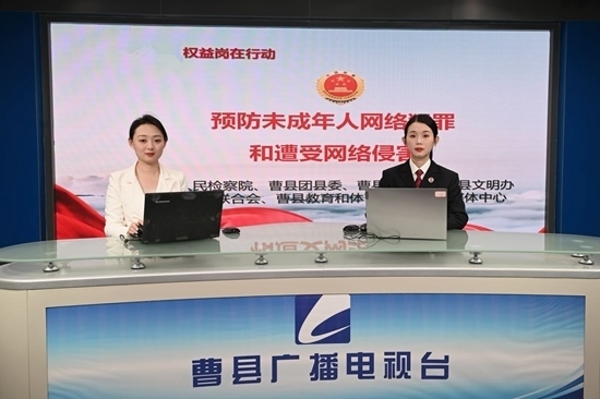 山東省曹縣人民檢察院未成年人檢察部在電視臺開展直播課程。