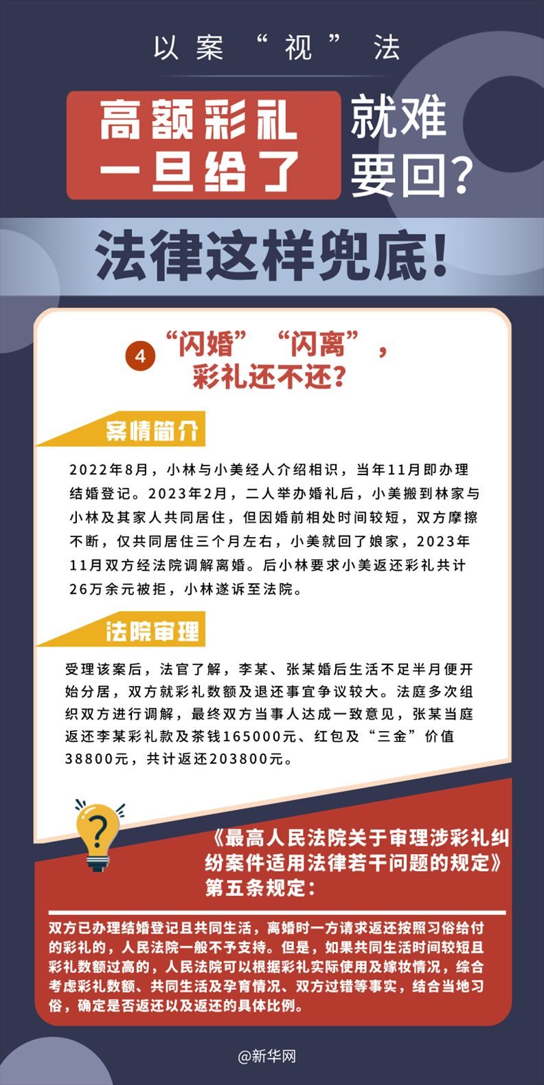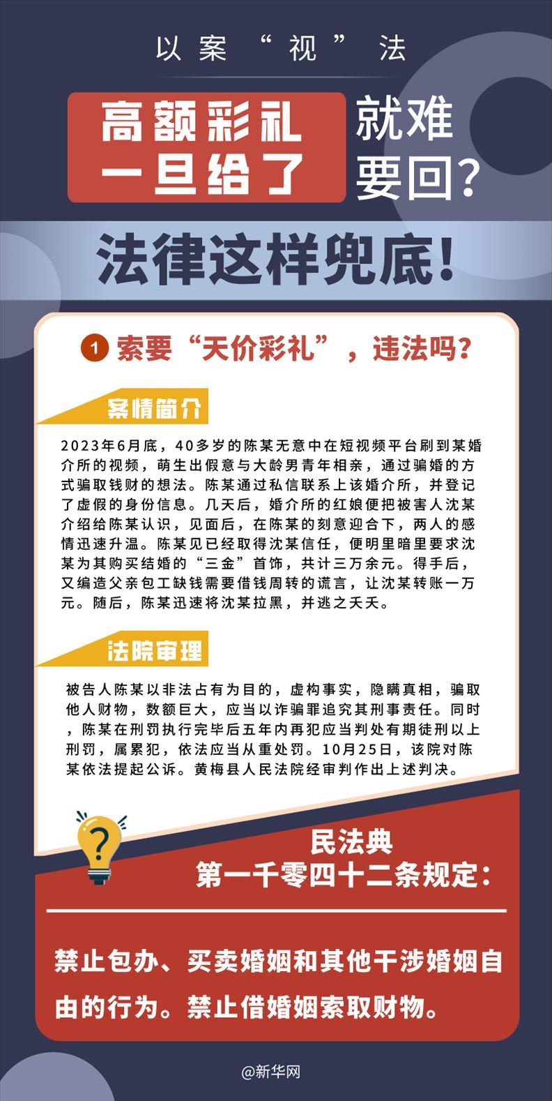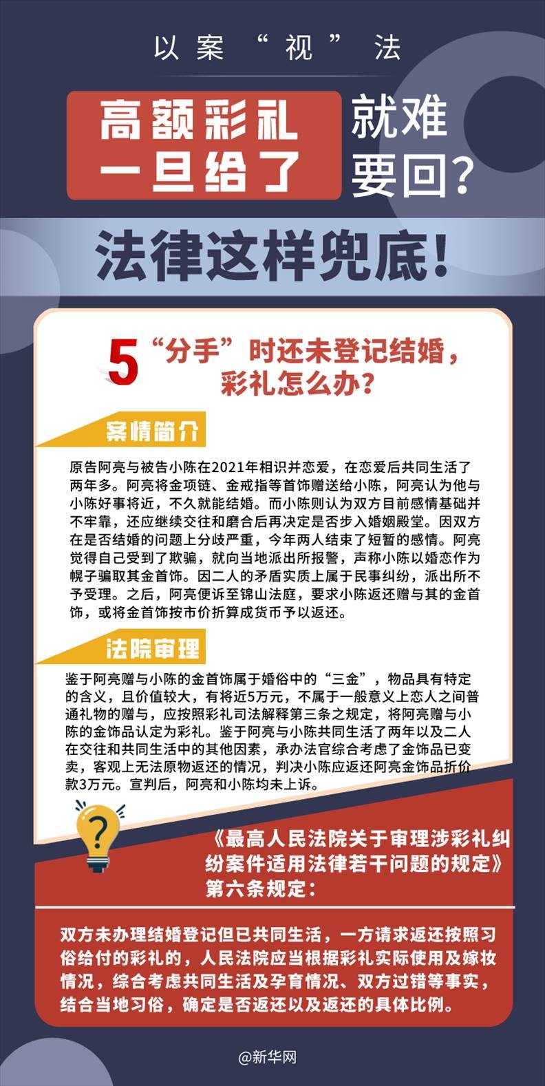 “五一”長假期間,各地迎來了婚禮高峰期,“彩禮”話題,尤其農(nóng)村高額彩禮現(xiàn)象備受關(guān)注。破解高價(jià)彩禮,在解決爭(zhēng)議的層面,司法盡了最大努力兜底。本期《以案“視”法》針對(duì)涉“高額彩禮”糾紛,帶大家學(xué)習(xí)相關(guān)法律知識(shí)。