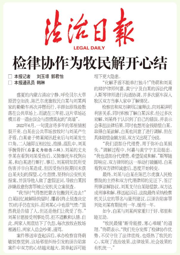 “牧民最懂‘?dāng)喙悄芙?,寒心難暖’的道理?!辟∶缺硎荆拔覀兂浞职l(fā)揮了檢律協(xié)作優(yōu)勢,不僅守住了法律底線,也焐熱了牧民的心,實(shí)現(xiàn)了政治效果、法律效果、社會(huì)效果的有機(jī)統(tǒng)一?!保?span style="text-align: justify;">作者 劉玉璟 郭君怡 韓琳)
