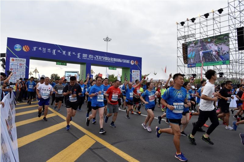 8月24日傍晚,蒙泰·2019鄂爾多斯國際馬拉松在鄂爾多斯市康巴什區(qū)烏蘭木倫湖廣場鳴槍開跑。