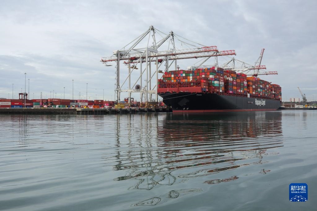這是11月29日在英國南安普敦港口拍攝的集裝箱和貨船。