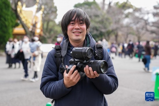 2月19日,在日本東京上野動物園,為大熊貓“香香”舉辦過攝影展的博主高氏貴博準(zhǔn)備用相機(jī)記錄當(dāng)天的“香香”。新華社記者 張笑宇 攝