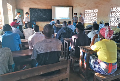 在幾內(nèi)亞比紹巴法塔,當(dāng)?shù)剞r(nóng)民接受中國(guó)農(nóng)技組專(zhuān)家的培訓(xùn)。中國(guó)援幾內(nèi)亞比紹農(nóng)技專(zhuān)家組供圖