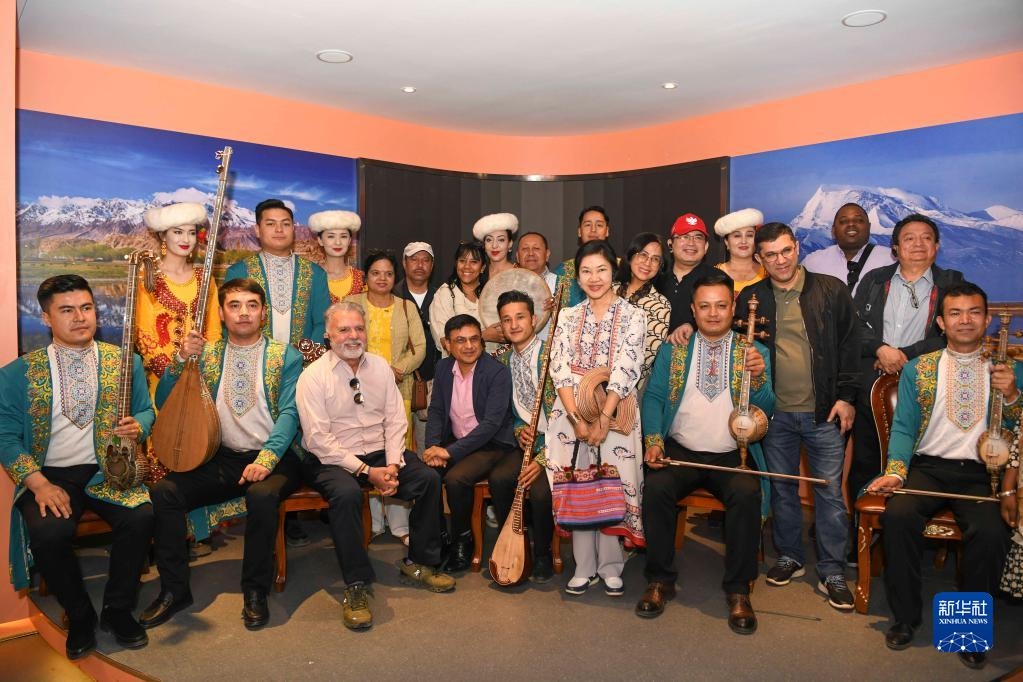 新疆自古以來是多元文化并存的地區(qū)。在疏附縣新疆民族樂器村,當(dāng)?shù)貥氛哂脽嵬吒?、都塔爾等傳統(tǒng)樂器為參訪團(tuán)一行演奏歌曲。巴西駐廣州總領(lǐng)事杜飛對(duì)此印象深刻:“我曾在中亞地區(qū)工作多年,對(duì)這些樂器很熟悉,新疆多元文化融合現(xiàn)狀展示出各民族可以很好地生活在一起?!?/p>