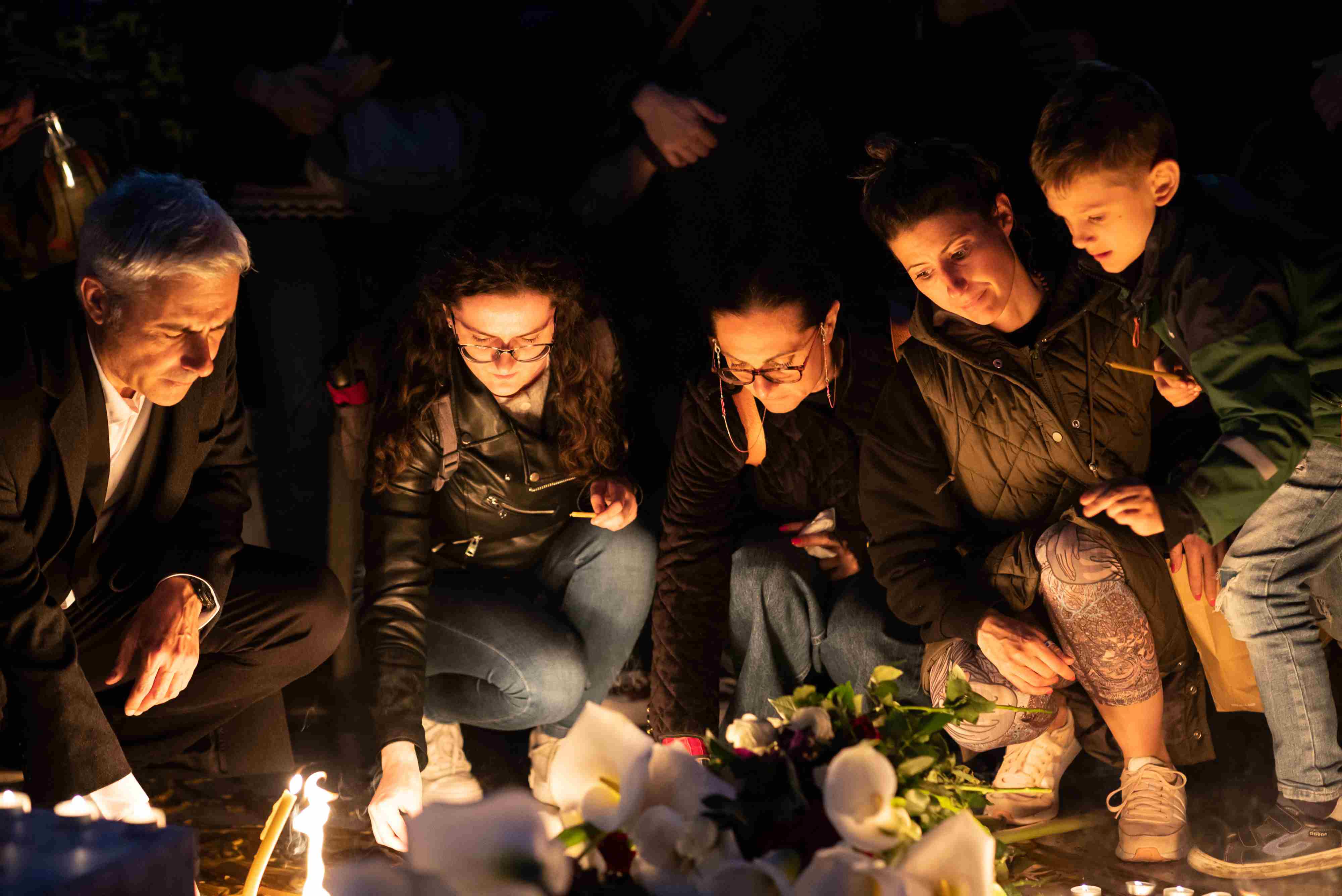 當?shù)貢r間2023年5月3日,塞爾維亞貝爾格萊德,人們在學校門前悼念遇難者。