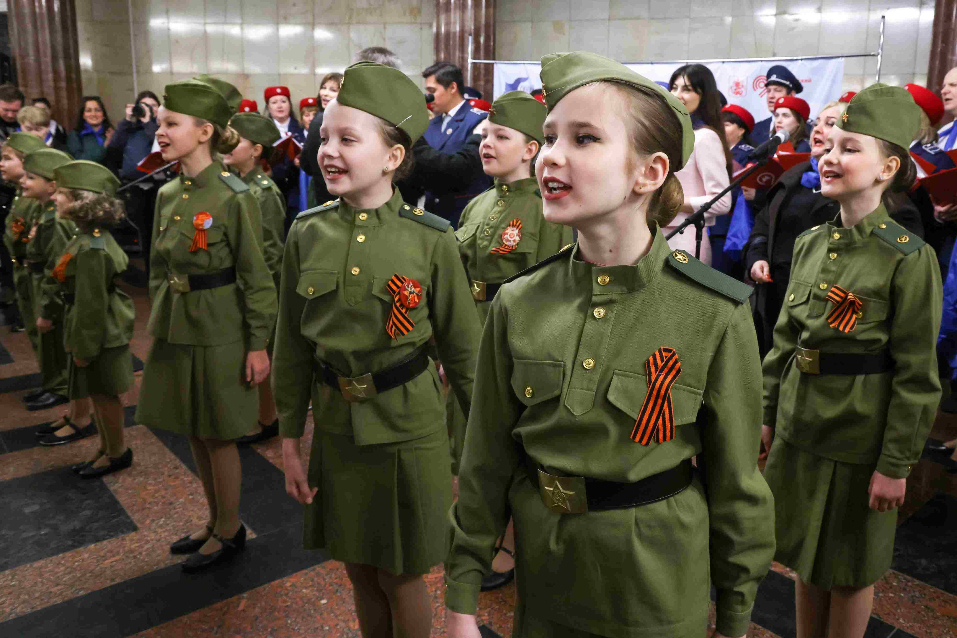 當地時間2023年5月8日,俄羅斯莫斯科,兒童在紀念二戰(zhàn)勝利78周年的音樂會上表演。 視覺中國