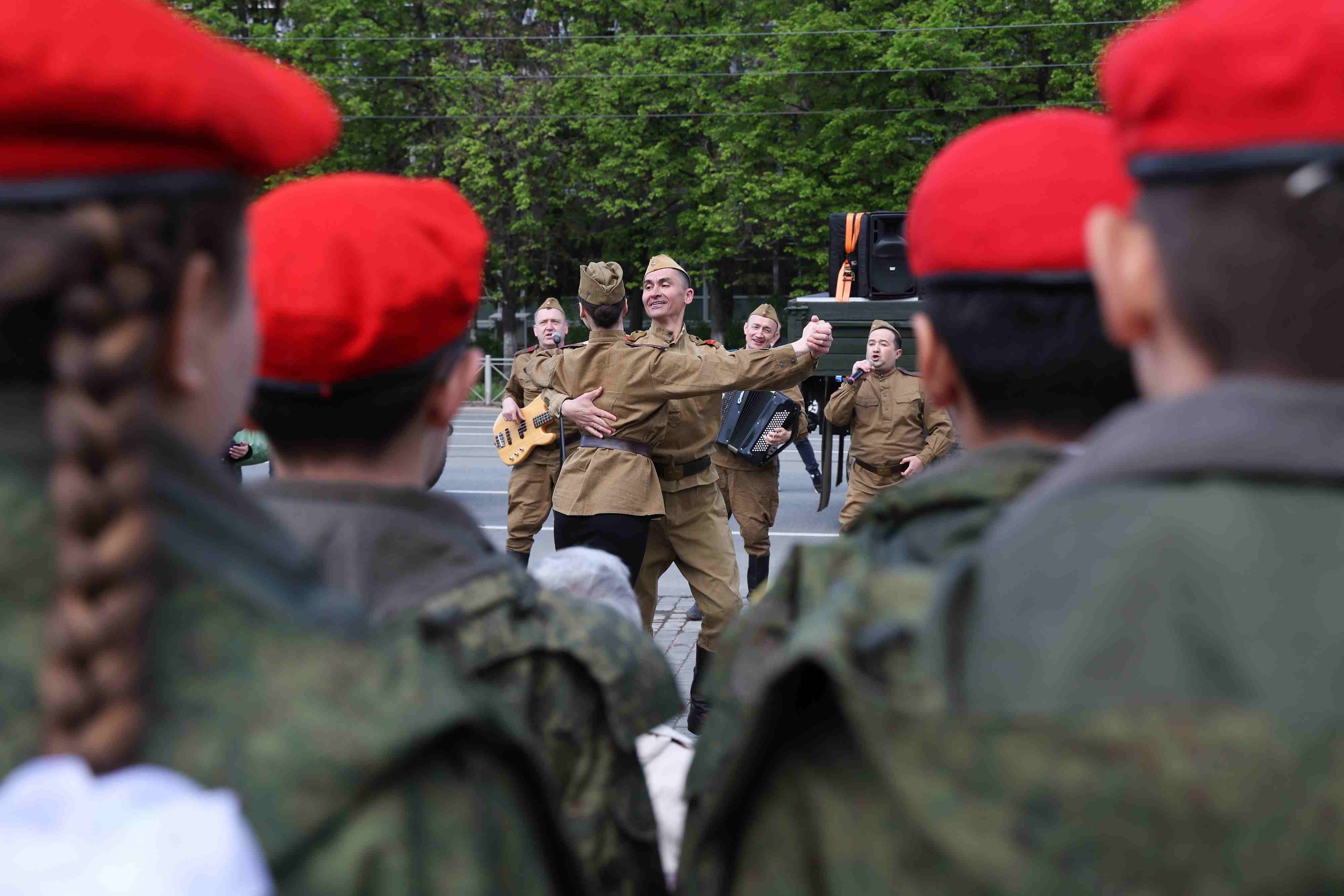 當地時間2023年5月8日,俄羅斯莫斯科,人們在紀念二戰(zhàn)勝利78周年的音樂會上表演。蘇聯(lián)解體后,俄羅斯自1995年起,在每年的5月9日舉行衛(wèi)國戰(zhàn)爭勝利日閱兵式及系列慶?;顒?。 視覺中國