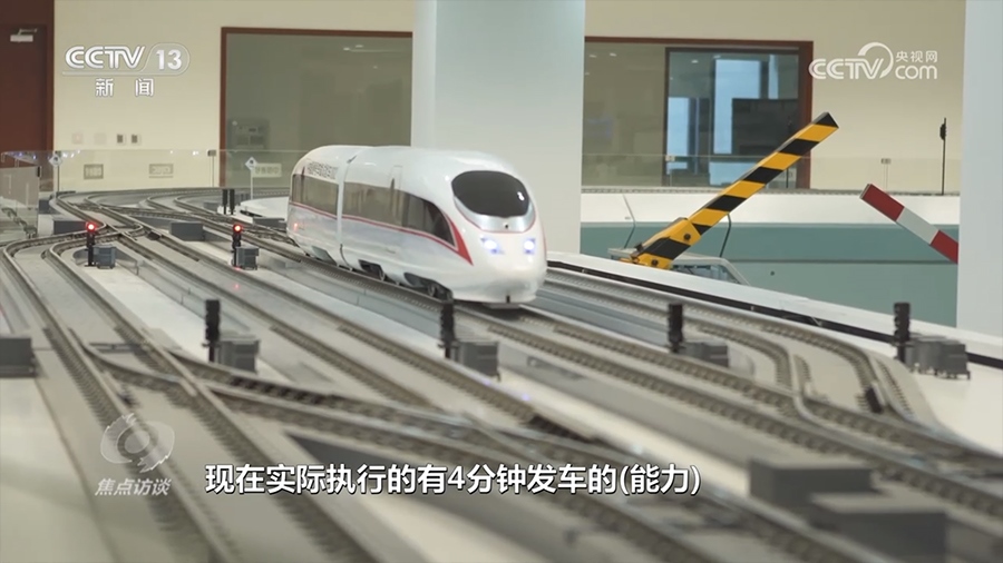 中國(guó)通號(hào)研究設(shè)計(jì)院集團(tuán)副總工程師江明:“我們要保證所有的車在一條線路上能夠安全,同時(shí)又比較密集地運(yùn)行。我們可以實(shí)時(shí)知道現(xiàn)在車所在的位置,同時(shí)還能知道車現(xiàn)在的速度。經(jīng)過(guò)這么多年的努力,現(xiàn)在實(shí)際執(zhí)行的有4分鐘發(fā)車的能力。”