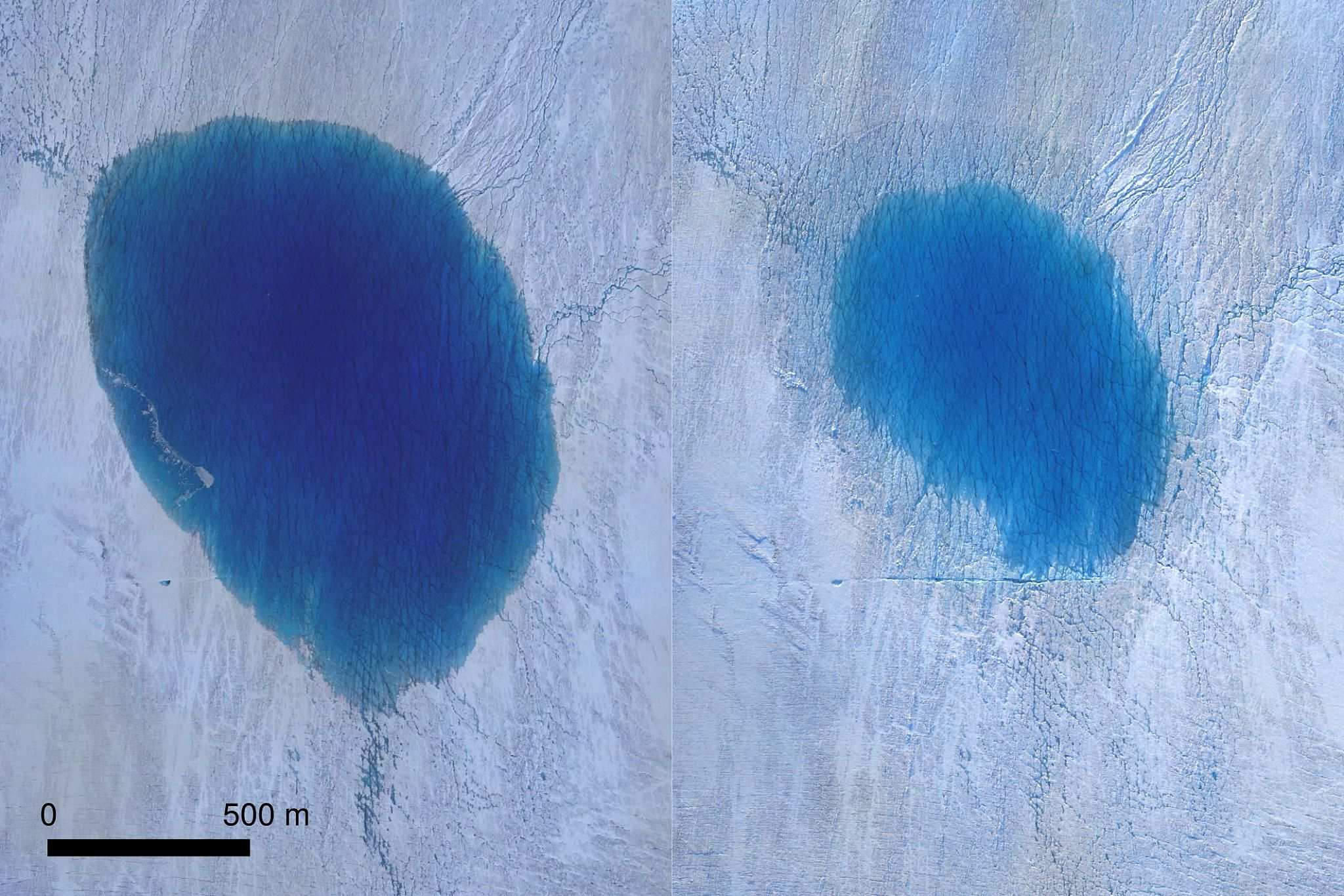 當(dāng)?shù)貢r(shí)間2019年12月2日,格陵蘭島冰蓋上一個(gè)由融冰的水形成的湖泊在蓄滿水之后開始快速破裂和排水,由于氣候變化,這種現(xiàn)象越來(lái)越頻繁。