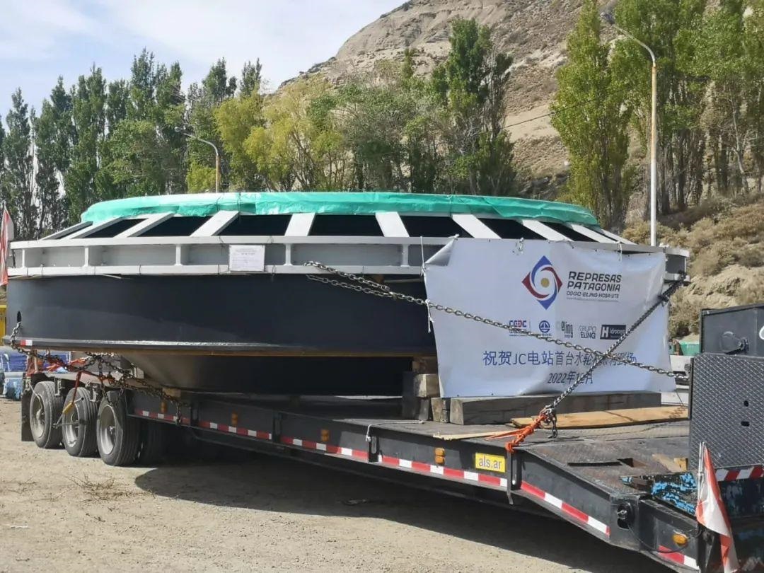 2022年12月7日,由中國企業(yè)聯(lián)合當(dāng)?shù)仄髽I(yè)承建的阿根廷吉賽水電站項(xiàng)目JC電站首臺(tái)軸流轉(zhuǎn)槳式水輪機(jī)由中國運(yùn)抵阿根廷(圖片來源:中國駐阿根廷使館微信公眾號)