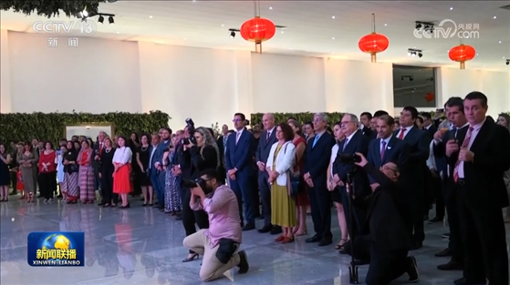 在巴西,各界人士出席了中國使館舉行的國慶招待會。