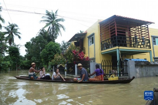 這是8月12日拍攝的緬甸勃固鎮(zhèn)洪災區(qū)。新華社發(fā)(苗覺梭攝)