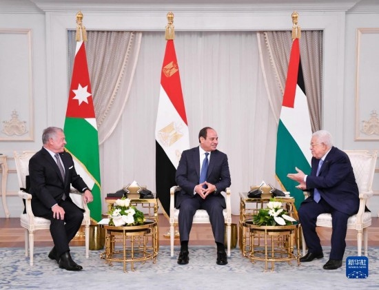 埃及總統(tǒng)府在會后發(fā)表聲明說,埃及總統(tǒng)塞西、約旦國王阿卜杜拉二世和巴勒斯坦總統(tǒng)阿巴斯在會上表示,巴勒斯坦人民理應獲得他們的全部合法權(quán)利,包括建立以1967年邊界為基礎、以東耶路撒冷為首都、享有完全主權(quán)的、獨立的巴勒斯坦國的權(quán)利。與此同時,相關方面須根據(jù)國際合法決議妥善解決巴勒斯坦難民問題,并在已獲批準的法律條文基礎上實現(xiàn)“兩國方案”。