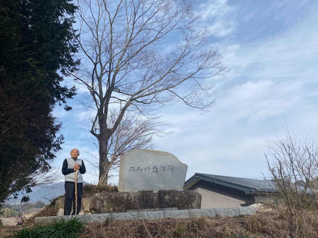 1月13日,在日本長野縣飯?zhí)锸?,原“為了和平的信州?zhàn)爭展實(shí)行委員會(huì)”會(huì)長及“飯?zhí)锸泻推劫Y料收集委員會(huì)”會(huì)長久保田昇站在自家門前留影。新華社記者郭丹攝