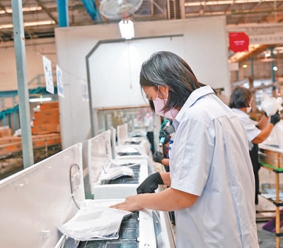 泰國員工在海爾空調(diào)生產(chǎn)線進行操作。陳 愛攝