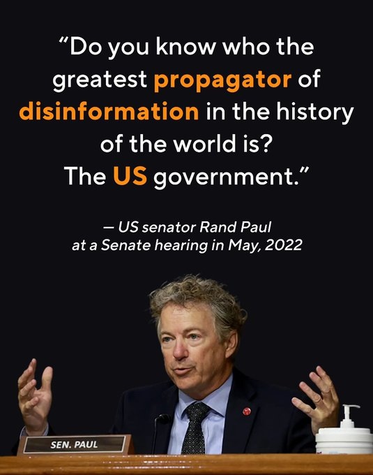 在2022年5月美國國會(huì)一場聽證會(huì)上,聯(lián)邦參議員蘭德·保羅自問自答并舉出一系列例證,其中包括2003年美國政府以“大規(guī)模殺傷性武器”為借口入侵伊拉克。