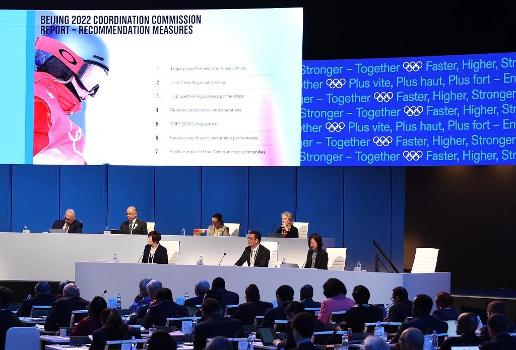 張謙首先向巴赫主席、各位國際奧委會委員以及國際奧委會的工作人員表示衷心感謝。她指出,在北京冬奧會籌辦期間,國內外各方面緊密合作,高質量完成了冬奧籌辦舉辦各項任務,向世界奉獻了一屆簡約、安全、精彩的奧運盛會,全面兌現(xiàn)了對國際社會的莊嚴承諾。