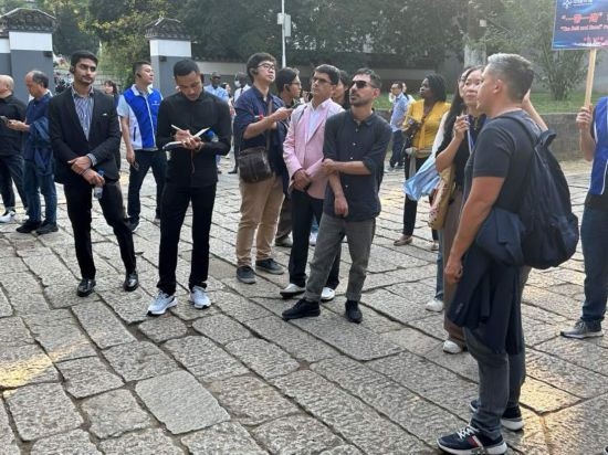 10月24日,2023“一帶一路”媒體合作論壇聯(lián)合采訪團(tuán)的外國記者參訪岳麓書院。(本報(bào)記者 劉書文攝)