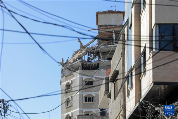 這是12月24日在加沙地帶南部城市汗尤尼斯拍攝的以軍襲擊后的受損建筑。新華社發(fā)(里澤克·阿卜杜勒賈瓦德攝)pagebreak