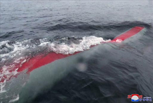 去年3月,朝鮮進(jìn)行了一系列軍事訓(xùn)練活動(dòng),包括新型水下攻擊武器系統(tǒng)試驗(yàn),其中,“海嘯”的核無(wú)人潛水攻擊艇首次亮相。試驗(yàn)在朝鮮咸鏡南道利原郡海岸進(jìn)行,在80米至150米深度潛航了約59小時(shí),最后到達(dá)假想敵人港口的洪原灣水域目標(biāo)點(diǎn)爆炸。一個(gè)月后朝鮮公開(kāi)了“海嘯-2”型核無(wú)人潛水攻擊艇,朝方稱(chēng),該艇進(jìn)行了71小時(shí)、1000千米的潛航試驗(yàn),驗(yàn)證了潛水式戰(zhàn)略武器系統(tǒng)的可靠性和致命打擊能力。