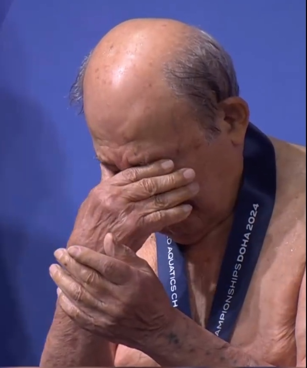 2024多哈游泳世錦賽正在進行中。其間一位百歲老者,吸引了全世界目光。