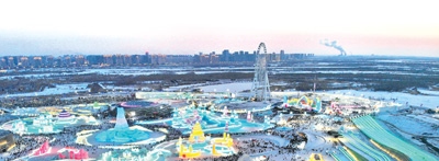 2月15日,黑龍江哈爾濱冰雪大世界園區(qū)。新華社記者 王建威攝