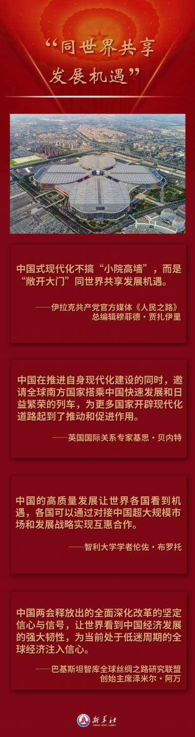 如何推動中國式現(xiàn)代化建設(shè),是國際社會長期關(guān)注中國的一大焦點。透過中國全國兩會窗口,國際輿論和海外人士看到,在中國式現(xiàn)代化的道路指引下,中國經(jīng)濟社會發(fā)展取得令人矚目的成績,給世界各國帶來合作共贏的新機遇,中國式現(xiàn)代化為人類實現(xiàn)現(xiàn)代化提供了新選擇,為發(fā)展中國家拓展現(xiàn)代化路徑提供了有益啟示。
