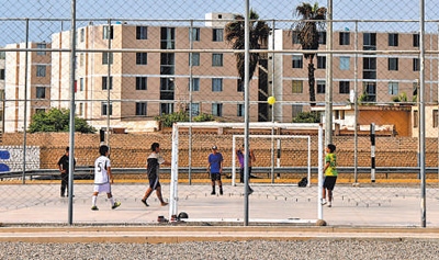 卡亞俄綠色海岸公路盡頭,是項目方修建的休閑娛樂區(qū)——圣洛倫索廣場。下午陽光正好,兩個小型足球場上有不少青少年在踢足球。一旁的小公園里,當?shù)鼐用裼崎e地牽著寵物狗散步。公路邊的自行車道上,不少騎行愛好者騎著自行車一閃而過。