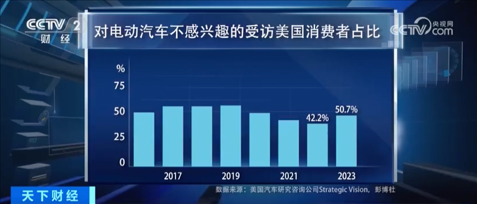 △一項針對25萬美國汽車消費者的調(diào)查顯示,2023年對于購買和租賃電動汽車不感興趣的消費者占比已經(jīng)超過了一半,達到了50.7%。