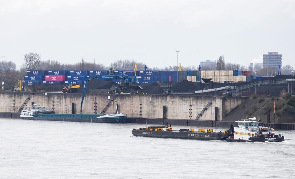 貨輪排隊(duì)???,火車鳴笛駛?cè)胴涍\(yùn)場站,卡車搭載著印有“渝新歐”“義新歐”“西安港”等字樣的集裝箱往來奔馳……這座萊茵河畔的港口,一派繁忙景象。