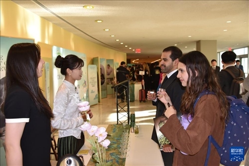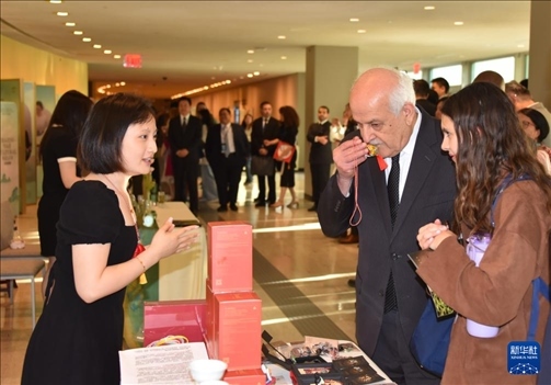 5月21日,在位于紐約的聯(lián)合國總部,人們參加“茶和天下”國際茶日展示和慶祝活動(dòng)。新華社記者 王建剛 攝