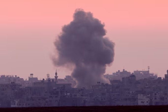 當(dāng)?shù)貢r間6月5日,加沙地帶上空在以軍空襲后升起濃煙。