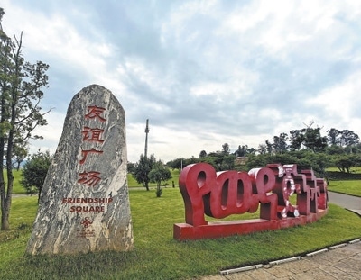 鐫刻著“友誼廣場”幾個(gè)中文大字的泰山石碑矗立在半山坡一片平地上。本報(bào)記者 任 彥攝