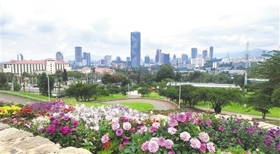 從友誼廣場眺望亞的斯亞貝巴天際線。 本報(bào)記者 萬 宇攝