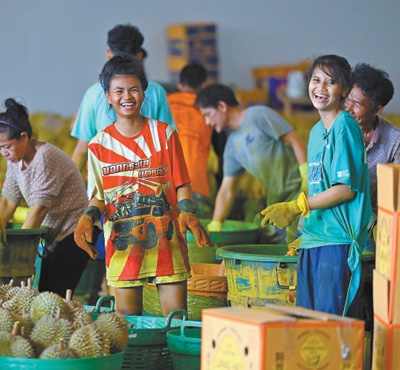榴蓮是中國(guó)第一大水果進(jìn)口品類。據(jù)統(tǒng)計(jì),2023年中國(guó)進(jìn)口142.6萬(wàn)噸鮮榴蓮,其中92.9萬(wàn)噸來(lái)自泰國(guó)。中國(guó)市場(chǎng)的強(qiáng)勁需求,帶動(dòng)了泰國(guó)水果產(chǎn)業(yè)發(fā)展。泰國(guó)商業(yè)部數(shù)據(jù)顯示,2024年尖竹汶府的榴蓮產(chǎn)量預(yù)計(jì)突破56萬(wàn)噸,同比增長(zhǎng)超4.3%。同時(shí),山竹、龍宮果等熱帶水果的產(chǎn)量也迎來(lái)了快速增長(zhǎng)。“我推薦了不少親朋好友來(lái)水果加工廠上班,收入有保障,旺季的提成更是豐厚!”猜維開(kāi)心地說(shuō)。
